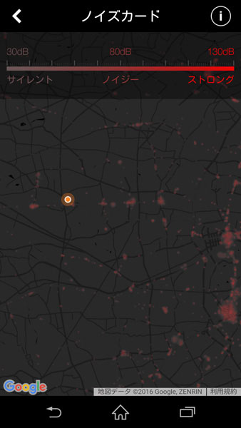 アプリに搭載されている「ノイズガード」のサービスではマップをみながらノイズの多い地域の情報が参照できる