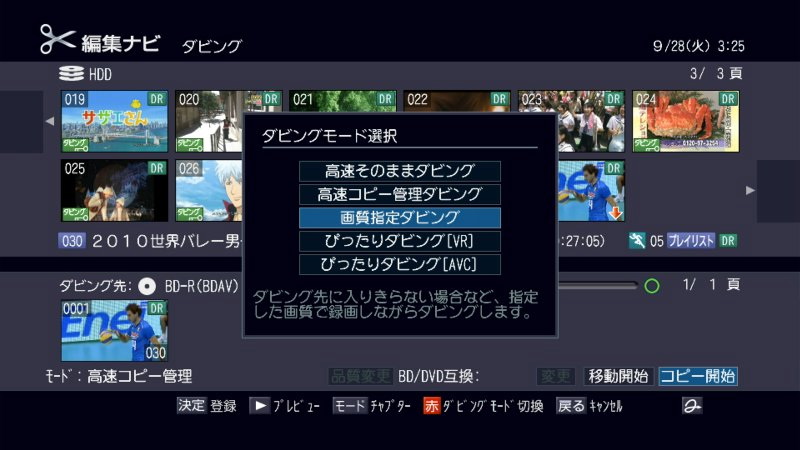 ダビングの実行はBDのほかにHDD上のダビング、さらにモード変換まで指定可能。プレイリスト編集と合わせて様々なダビングパターンを実行可能だ