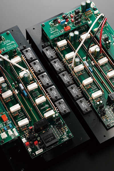 Grandioso S1では連続動作17A、瞬間動作34Aという画期的な電流供給能力を誇り、一般的なパワートランジスターの2倍近いサイズの大型バイポーラLAPT素子を採用。またパワーアンプモジュールは、バイポーラLAPT素子を5パラレル・プッシュプルとした3段ダーリントン構成とした