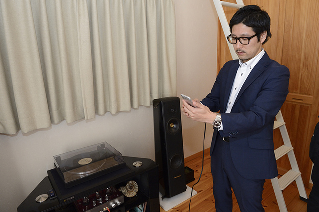 ヤマハ株式会社の音響営業統括部の金子 勇さんがまずは部屋の特性を測定する
