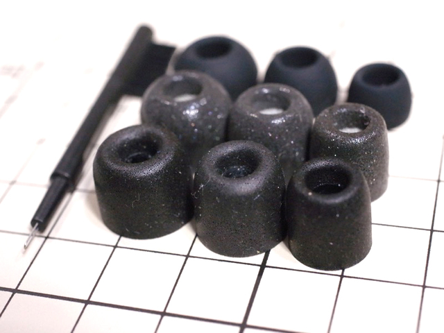 イヤーピースは多種付属!純正のフォームタイプ(手前)は装着感にしても音の感触にしてもやはり良好