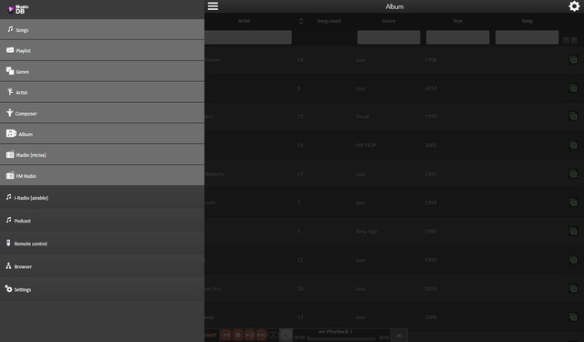 ブラウザの操作画面。左上のアイコンをクリックすると、各機能のメニュー一覧が表示
