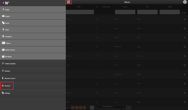 PCのブラウザでCA-X40のメニュー画面を表示したところ。まずは「Browser」を選択