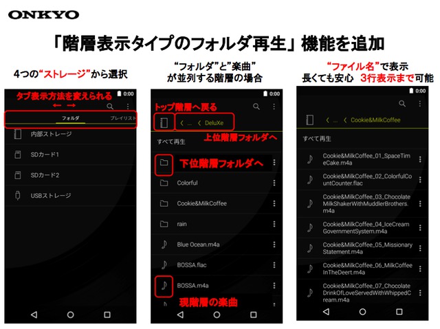 オンキヨー「DP-X1」。フォルダブラウザー搭載時の告知資料