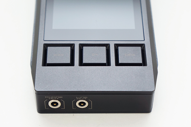 タッチディスプレイの下に独立した再生/一時停止、曲送り、曲戻しの3ボタンを装備