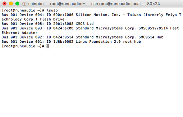 lsusbコマンドを実行したところ、quirks.cで定義されている機器のベンダーID(0x20b1、0x3008)がDevice 0005として検出されていた