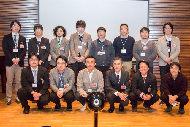 今回のパートナーシップセミナーに参加したオーディオショップのみなさん。奧左より(株)野田屋 野田怜男さん、(株)野田屋 湯川裕久さん、(株)マックスオーディオ 大原由奨さん、(株)大阪屋 高木寿暢さん、(株)木田電業 井上祐樹さん (株)椿テレビ商会 鈴木伸治さん、(有)エイブイボックス 南條光信さん、コンフォース(株)前野憲一さん。 手前左より(株)馬場電機 福留貴さん、(株)大阪屋 森田洋之さん、(株)サウンドテック 三宅宏明さん、ノムラ無線(株)河合敏明さん、(株)前越電化社 前越雅一さん、(株)ベイシス 栗本規光さん