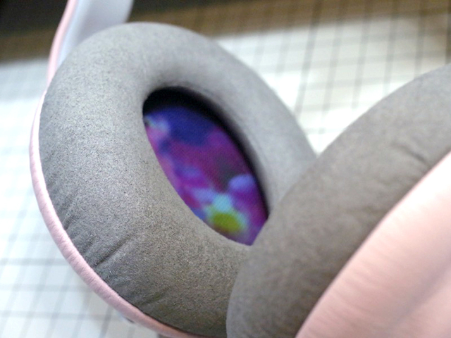 しっとりなめらかイヤーパッドの肌触りはたしかによい!装着時は見えないメッシュ部分にフラワーパワーを投入