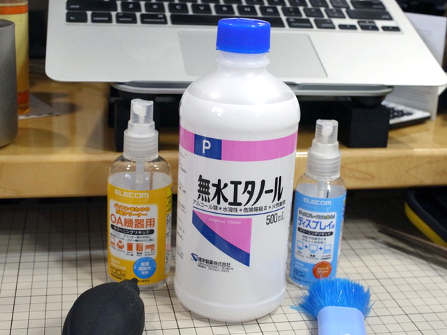 汚れ落としの最終兵器、無水エタノール。あまり多用するべきものではないが、しかし常備しておいて損はない