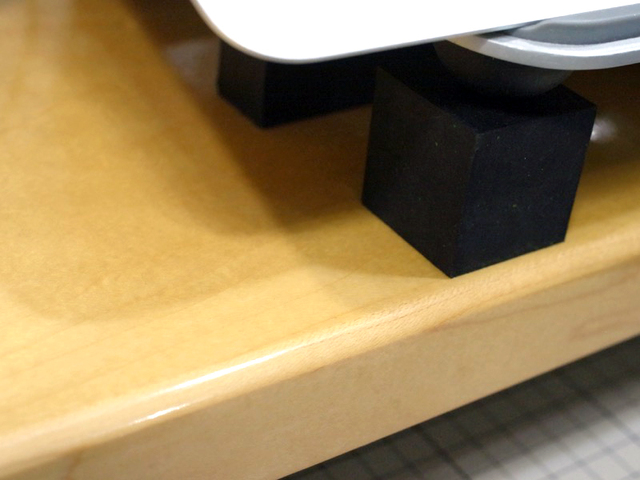 手近なオーディオ機器によいサンプルがなかったので…このメタルラックのデスクボードはメイプル突き板仕上げの上にウレタン塗装