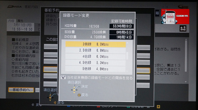 予約録画時にも録画モードを細かく設定できる