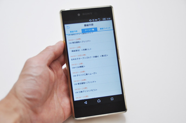 アプリでシーンリストを表示。CMと本編が若干見分けづらい