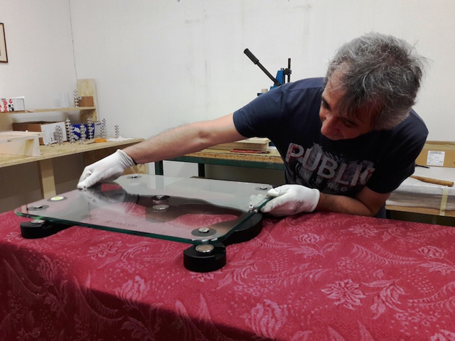 ボード部は重負荷を長時間与えても曲がることがないという焼き入れ強化ガラスを採用