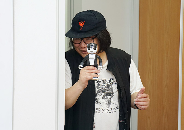 ロボホンを十字架のように掲げて部屋へ侵入する一条氏