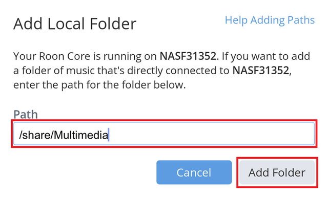 「Multimedia」という共有フォルダに音源を保存しているので、そのパスを入力