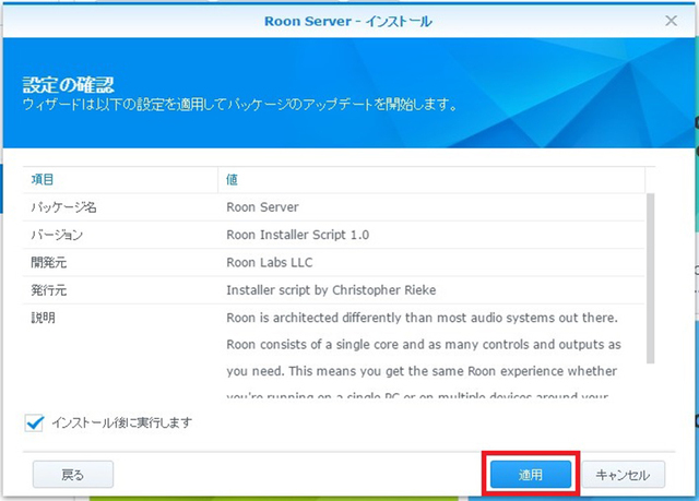 「インストール後に実行」にチェックをいれて「実行」を選択