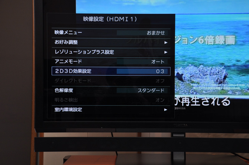 2D/3Dリアルタイム変換の効果設置メニュー