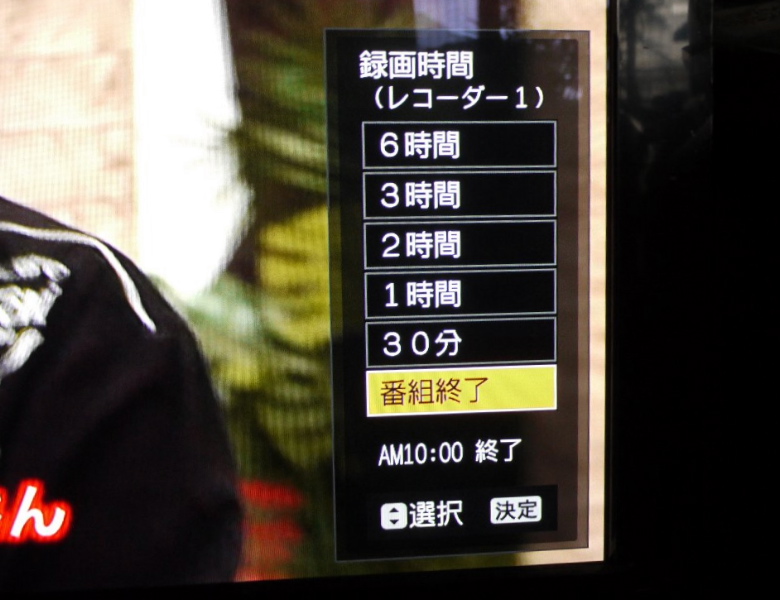 録画を開始すると、自動的に今見ている番組終了の時間までセットできます