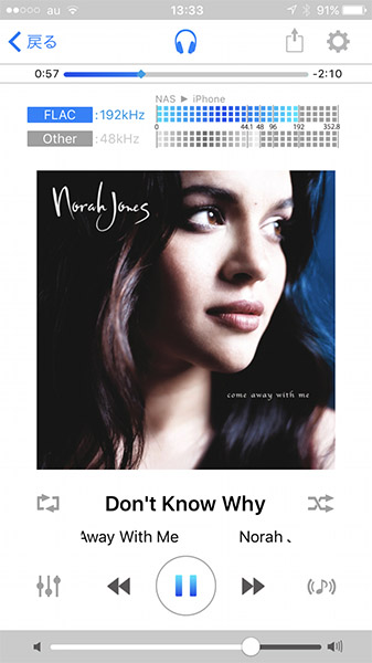 変換アダプタ使用時に、オーディオ再生アプリ「Ne Player」で192kHz/24bitと88.2kHz/24bitのFLACを再生したところ。出力が48kHzを超えることはなかった