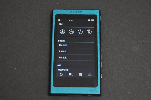 設定画面に入ると、トップに「明るさ」「NC」「BT」「BTリモコン」のショートカットアイコンが並ぶ