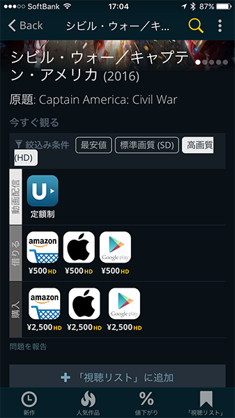 このように、「シビル・ウォー/キャプテン・アメリカ」は定額制サービスでも見られることがわかる。これがJustWatchの真骨頂だ