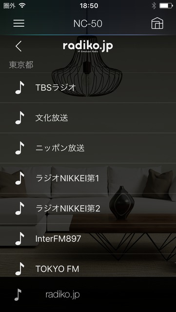 radiiko.jpの局選択画面、文字サイズも大きく見やすい