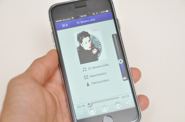 簡易なオーディオプレーヤー機能を搭載。カバーアートに長体がかかってしまうなど、正しく表示されないことも多いのが残念
