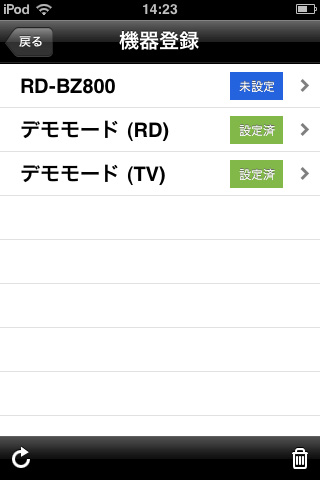 はじめにレコーダーの設定を行う。「未設定」となっているRD-BZ800のアイコンをタップする