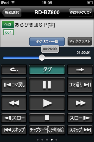 レコーダー版の再生画面。中央緑色のボタンがこのあと詳しく紹介する「タグ」作成機能で多用するボタン