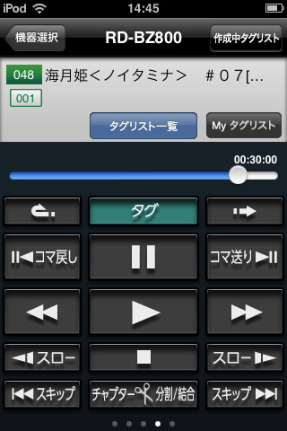 タグの入力操作は、再生中、任意の地点で緑色の「タグ」ボタンをタップするだけ