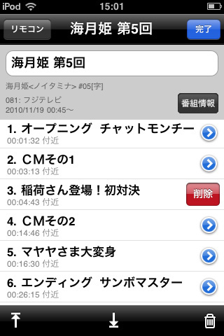 タグの削除は右フリックで「削除」ボタンを表示、タップして消去できる