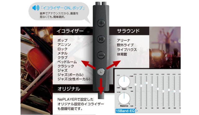 リモコンを長押しするとイコライザーやサラウンドを簡単に切換設定できる