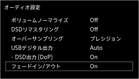 フェードイン/アウトは設定からオン/オフが切り替えられる