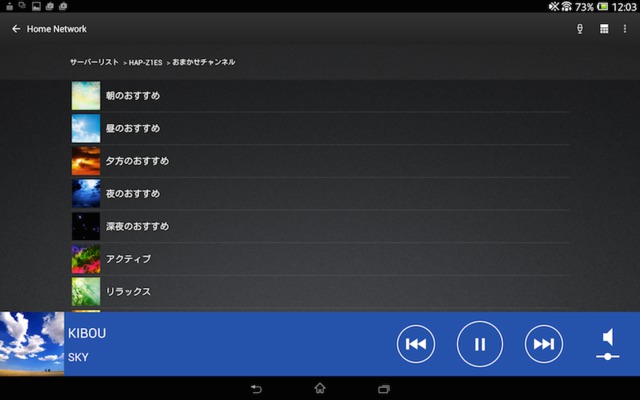 ソニーのSong Pal対応機器で確認したところ、HAP-Z1ESが生成した「おまかせチャンネル」のプレイリストも再生することができた