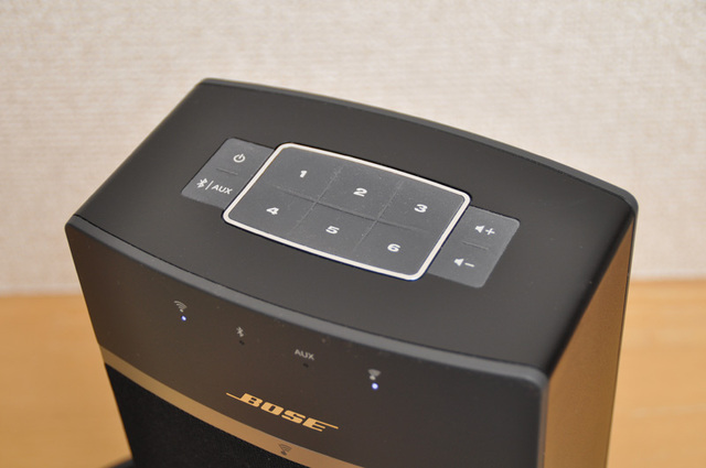 スピーカーのトップに6つのプリセットボタンを搭載。それぞれにお気に入りの音楽ソースを割り当てれば、電源を入れてプリセットボタンを選択するだけで素速く意中の音楽が聴ける