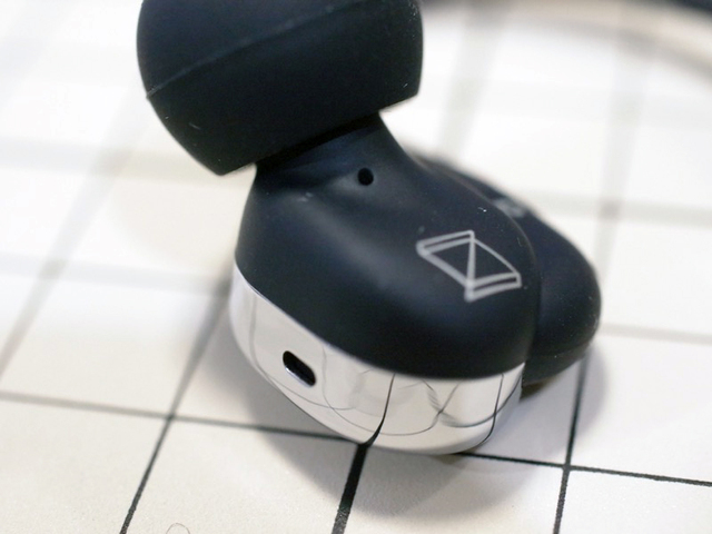 裏面のマットブラックはよい感じ。大小ふたつのポートによって遮音性を多少犠牲にしてでも積極的なサウンドチューニングを行なっていると思われる