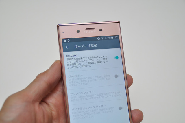 イヤホンリスニング時に、ハイレゾを除くあらゆる再生ソースをハイレゾ相当にアップコンバートするDSEE HXを搭載