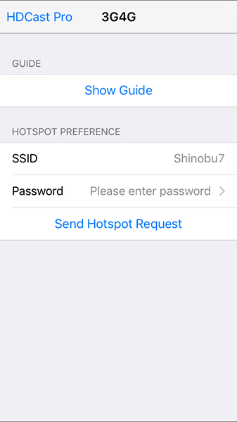 コントローラ画面の「3G4G」ボタンをタップすると、スマートフォンのテザリングサービスに切り替える画面が現れる(画面はiOS版アプリ)