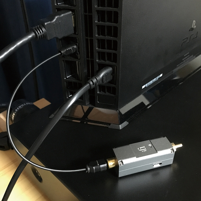 PS4にiPurifier SPDIFを接続したところ。RCA端子は丸型光TOSとのコンボジャックとなっている