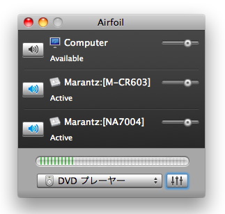 AirFoilの操作パネル。M-CR603など他のAirPlay対応機との同時出力も可能で、増やしてもCPU負荷には大きく影響しない