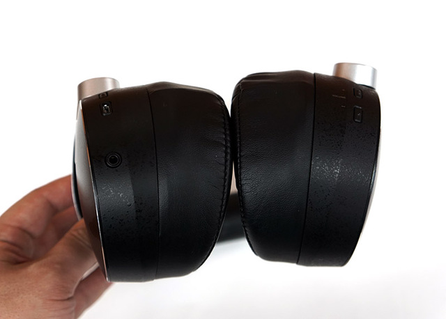 後方斜め下(写真では上部)が最も厚くなる立体縫製仕上げのイヤーパッド