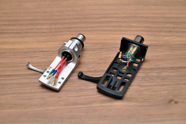左が単品販売のヘッドシェル「AT-LH13/OCC」、右はレコードプレーヤーに付属する「AT-HS10」