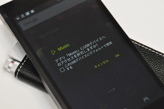 OTG USBケーブルでアンプを接続すると自動的にUSBオーディオデバイスとして認識される