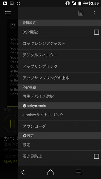 DP-X1Aと同じ豊富な設定メニューを用意。e-onkyo musicストアからダイレクトに楽曲を購入できる