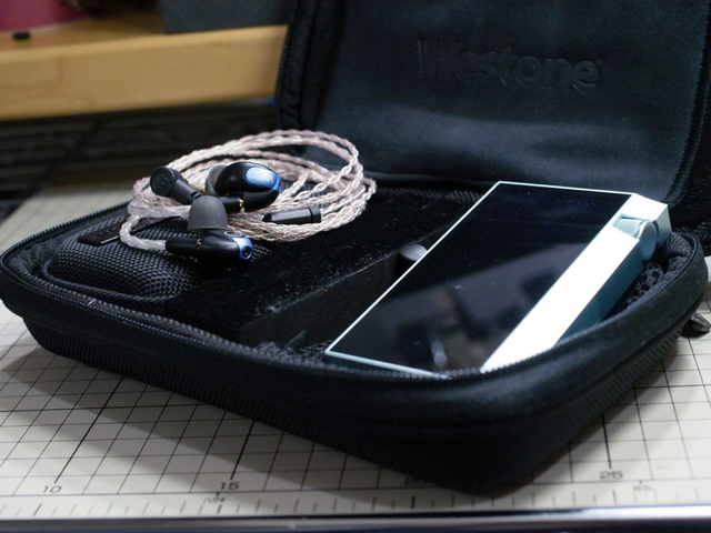 こういうサイズ感。手前に「AK70」、奥に普通サイズのイヤモニケースが収まっている状態
