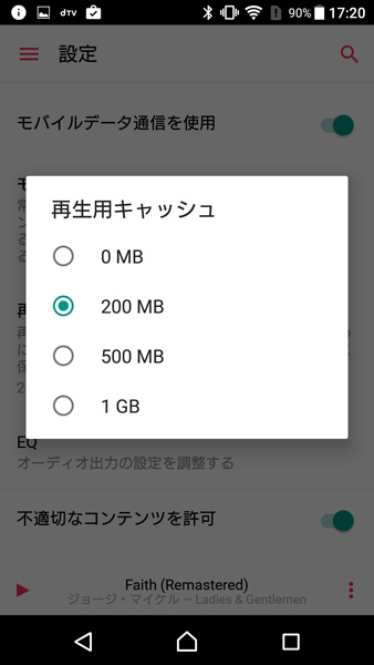 音楽を再生しながらキャッシュしておけば、2度・3度と繰り返しストリーミング再生する曲はデータの通信量が少し抑えられる。ベターなのはダウンロードしておくこと