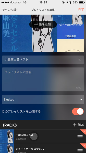 自作のプレイリスト公開も簡単。気の利いたタイトルや説明を加えたい