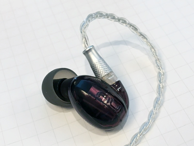 シェルの外半分は濃いめのトランスルーセント。薄っすらと中身が見えるが、単なるシングルBAにしては中身がでかい…