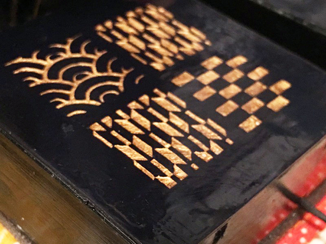 3Dプリンタで出力された模様部分に金粉を入れた細工