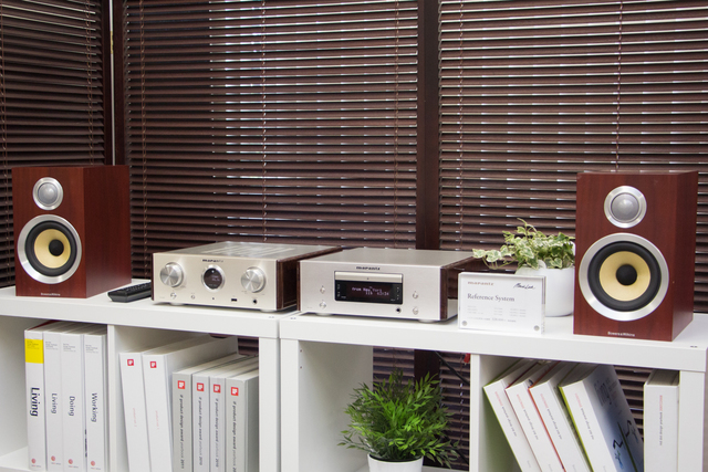 HD-AMP1(中央左)を、HD-CD1(中央右)と組み合わせたところ。スピーカーはB&Wの「CM1 S2」。HD-AMP1はデザインに統一性を持たせたシンプルなシステムを構築することも可能だ